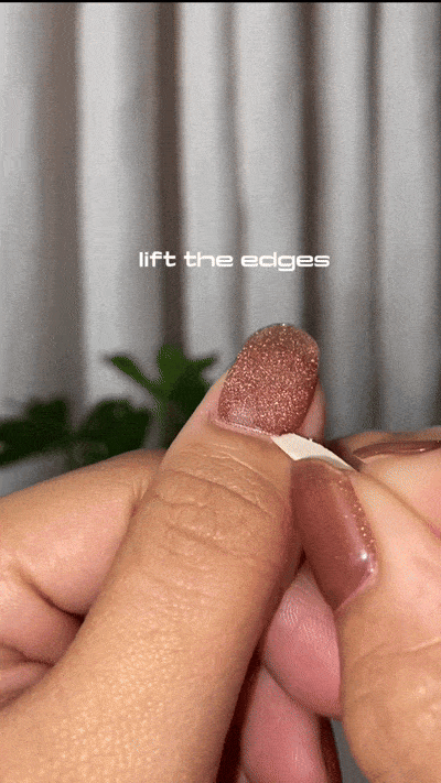 Lift the edges using the cuticle stick! Use our cuticle oil to help remove and protect your nails!