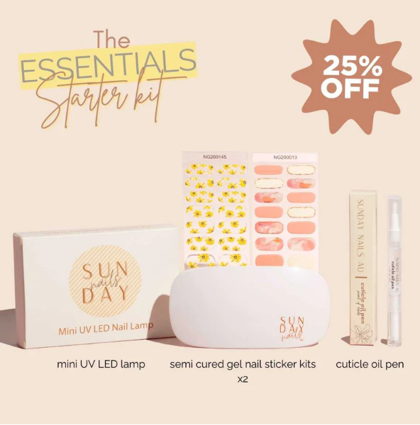 Meet the ultimate beginner-friendly kit. Get 2 gel nail stickers you choose, a mini UV LED lamp, and cuticle oil to finish the look — all at 25% OFF for a salon-perfect mani at home.